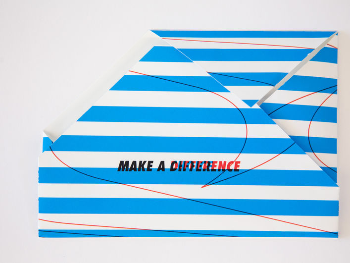 The designs were made to be experienced using red and blue filters that would isolate certain colors from the layout. This allowed for each image to have three different compositions.